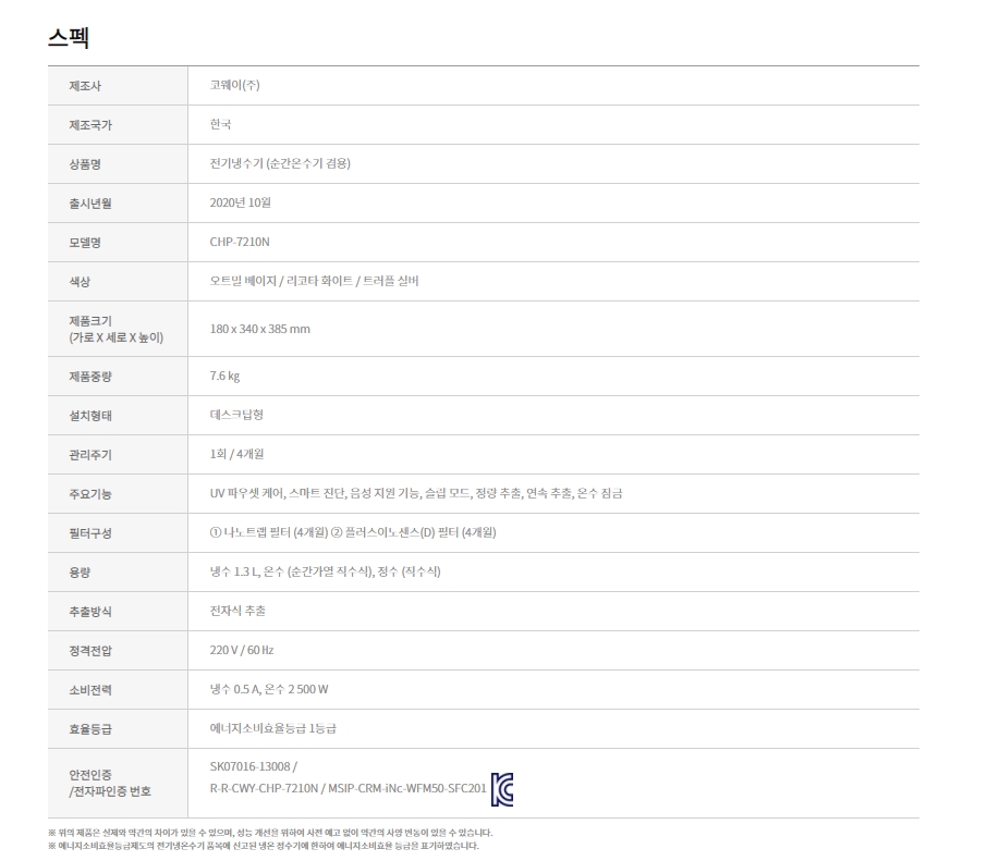 코웨이 아이콘 정수기 트러플 실버 (냉온정) 방문관리