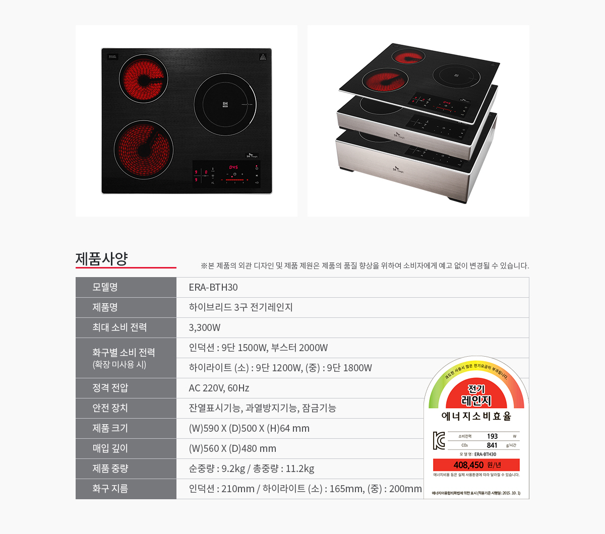 버너구성3구 (인덕션 2구 + 하이라이트 1구)