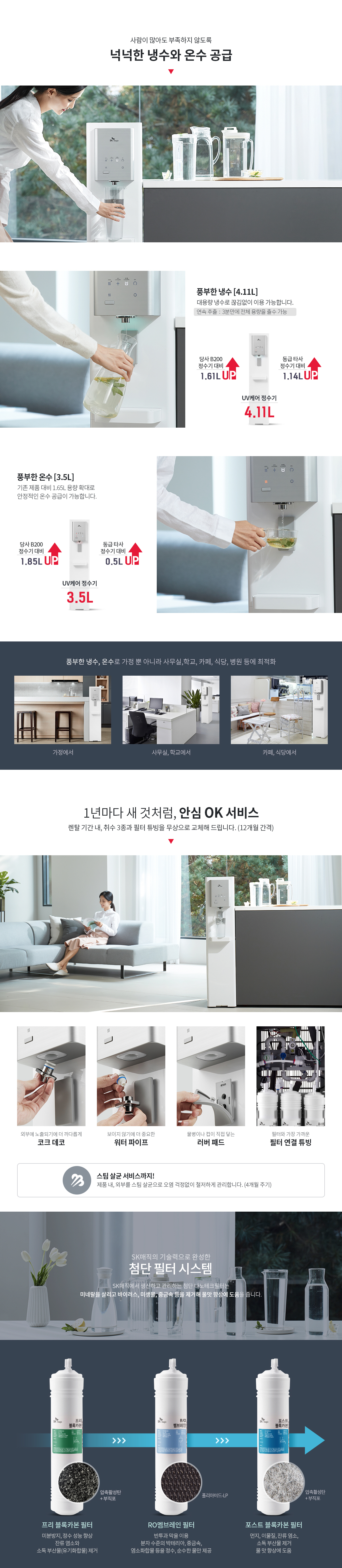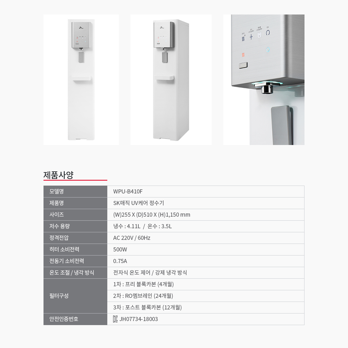 [SK매직] 워터룸 UV안심케어 냉온수기 WPU-B410F 렌탈 / 의무사용 3년 / 설치비,등록비면제