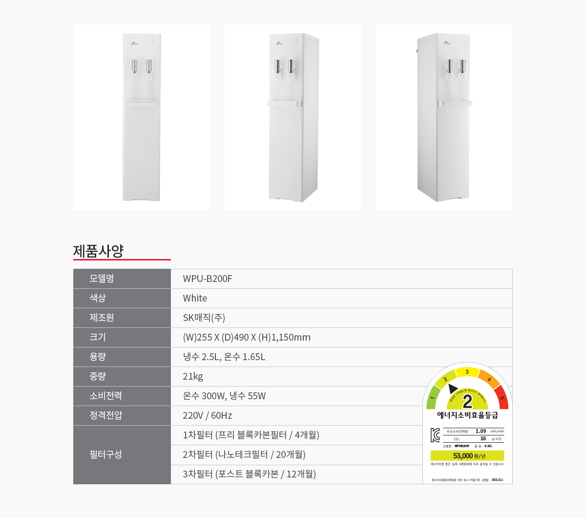 [SK매직] 슬림 NANO 냉온수기 WPU-B200F 렌탈 / 의무사용 3년 / 설치비,등록비면제