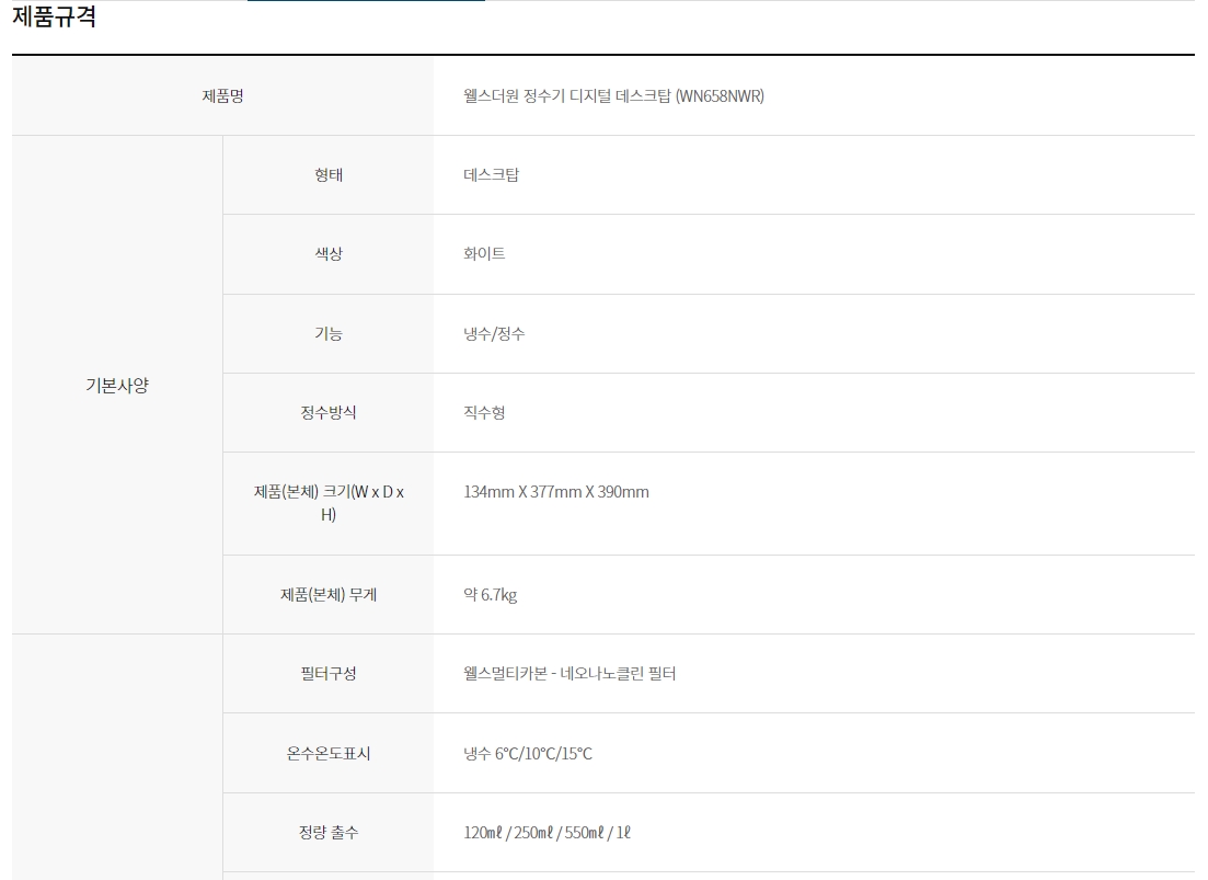 웰스 더원 정수기 디지털 데스크탑 화이트 (셀프관리,10%할인)