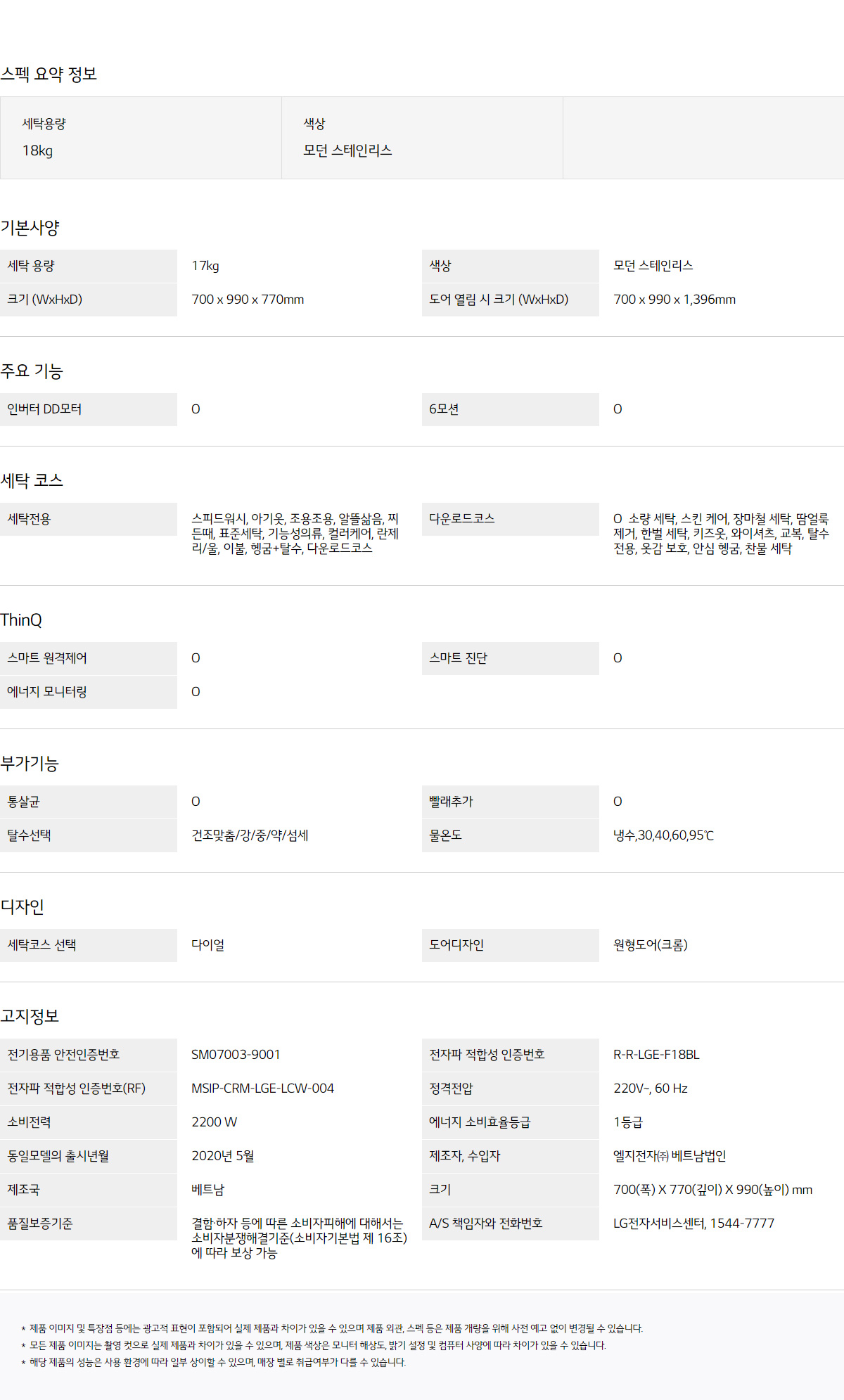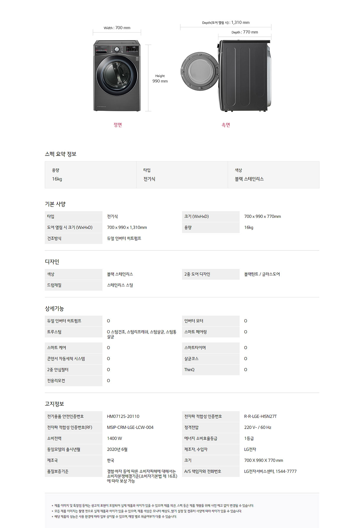[LG] 결합2종 트롬 드럼세탁기 17kg 모던스테인리스 + 트루스팀 건조기 16kg